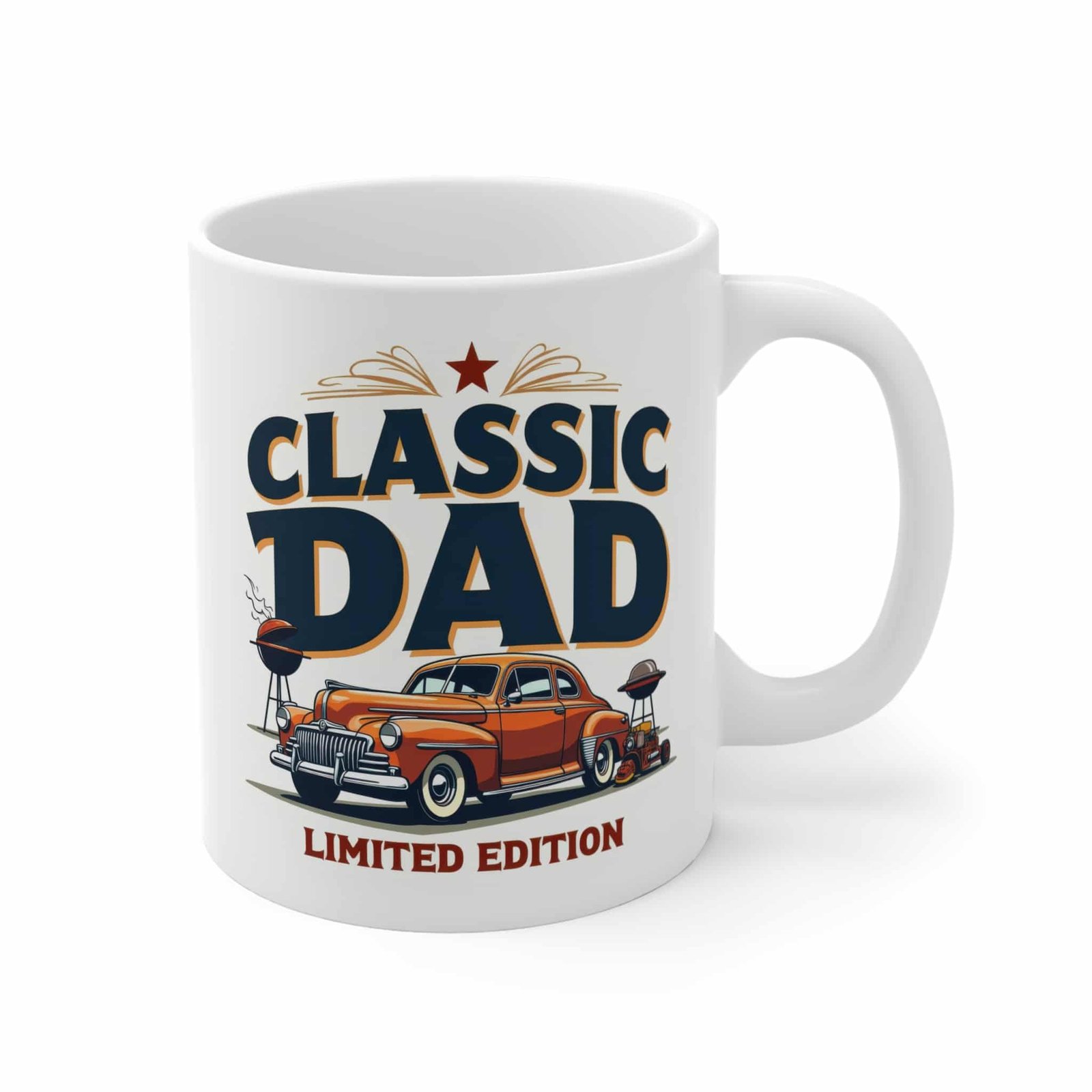 Introduce a touch of nostalgia to your mornings with this charming mug. Perfect for coffee aficionados and tea lovers alike, this whimsical design celebrates classic fathers who appreciate the finer things in life—like grilling on a summer day or taking a scenic drive. Its cheerful vibe adds a smile to your breakfast table or home office. Ideal for Father’s Day, birthdays, or any occasion to honor the special dads in your life, this mug is sure to become a beloved staple. Bring warmth and joy into your daily routine with this delightful piece!
