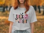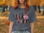 Celebrate Halloween with this adorable Trick or Treat design! Features a cute pumpkin a spooky bat a spider web and a black cat. This is the perfect Halloween shirt for kids.
