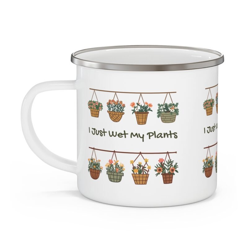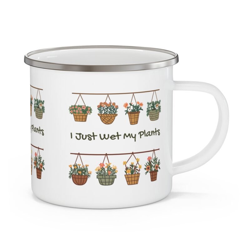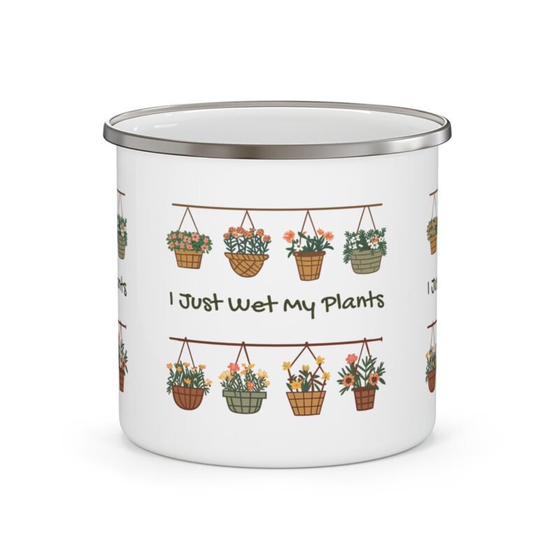 Introducing our charming Enamel Camping Mug, perfect for those who embrace the great outdoors or simply enjoy a cozy moment at home. With a delightful design featuring beautiful hanging planters, this mug radiates a warm, inviting vibe. It’s an ideal companion for camping trips, garden parties, or enjoying your morning coffee on the porch. This mug speaks to nature lovers, gardening enthusiasts, and anyone looking to add a sprinkle of cheer to their daily routine. It’s a thoughtful gift for holidays like Earth Day, birthdays, or just because – anyone will appreciate a little reminder to hydrate their plants!