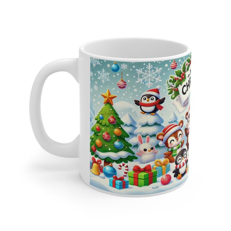 Brighten the holidays with this festive “Merry Christmas” mug featuring an adorable cast of holiday characters! From cheerful penguins and reindeer to playful bears, this vibrant 11oz ceramic mug is perfect for sipping hot cocoa, coffee, or tea during the holiday season. A charming addition to your kitchen or a thoughtful Christmas gift for friends, family, or coworkers. Made with durable, dishwasher- and microwave-safe ceramic, itβs as practical as it is delightful. Celebrate winter mornings with a cup full of holiday cheer!