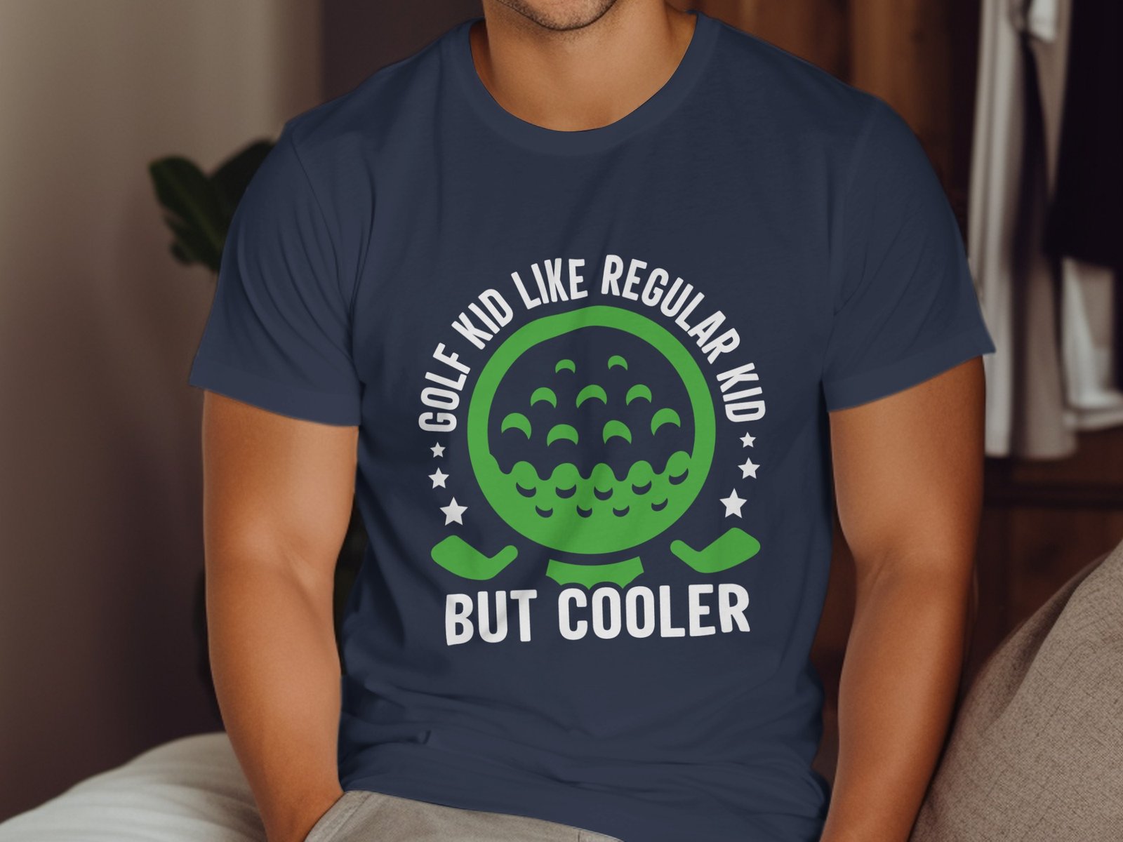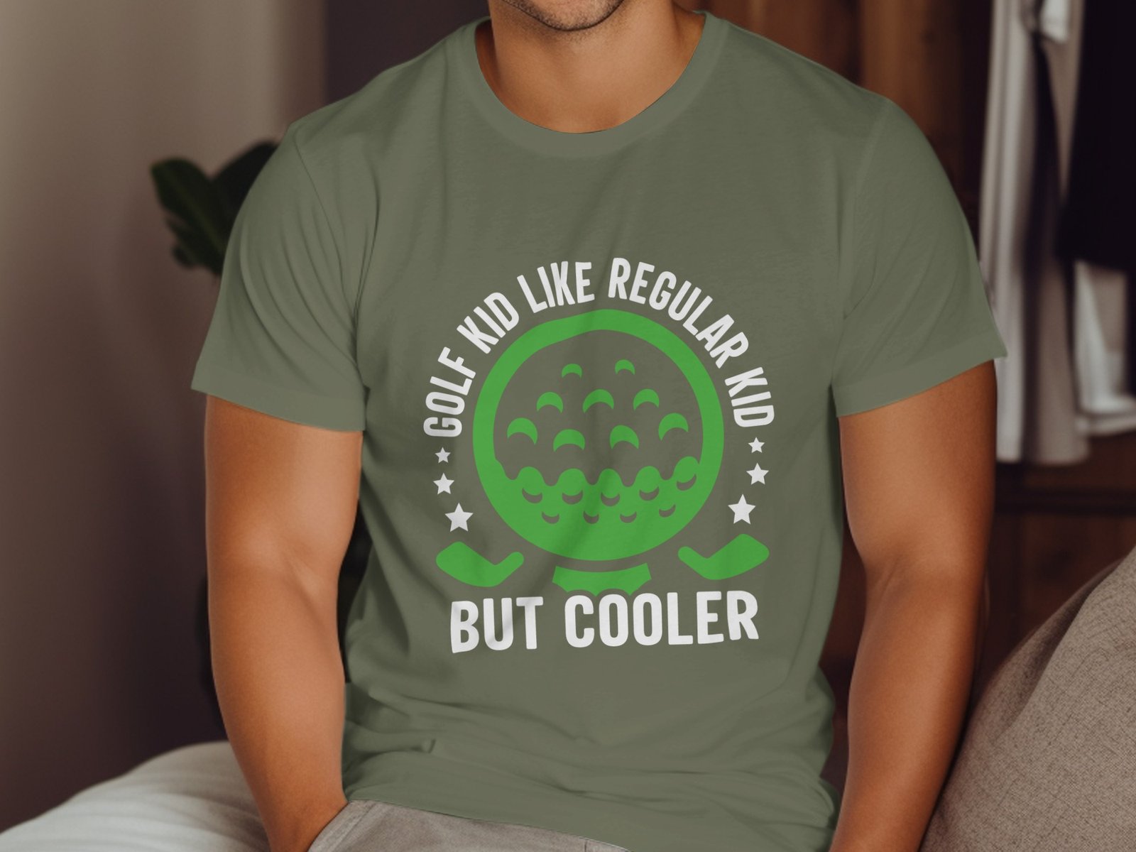 Green Golf Ball with Two Clubs Funny Graphics T-Shirt