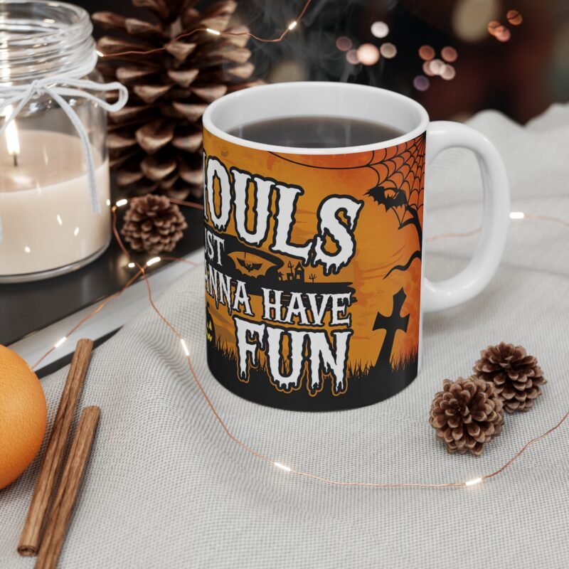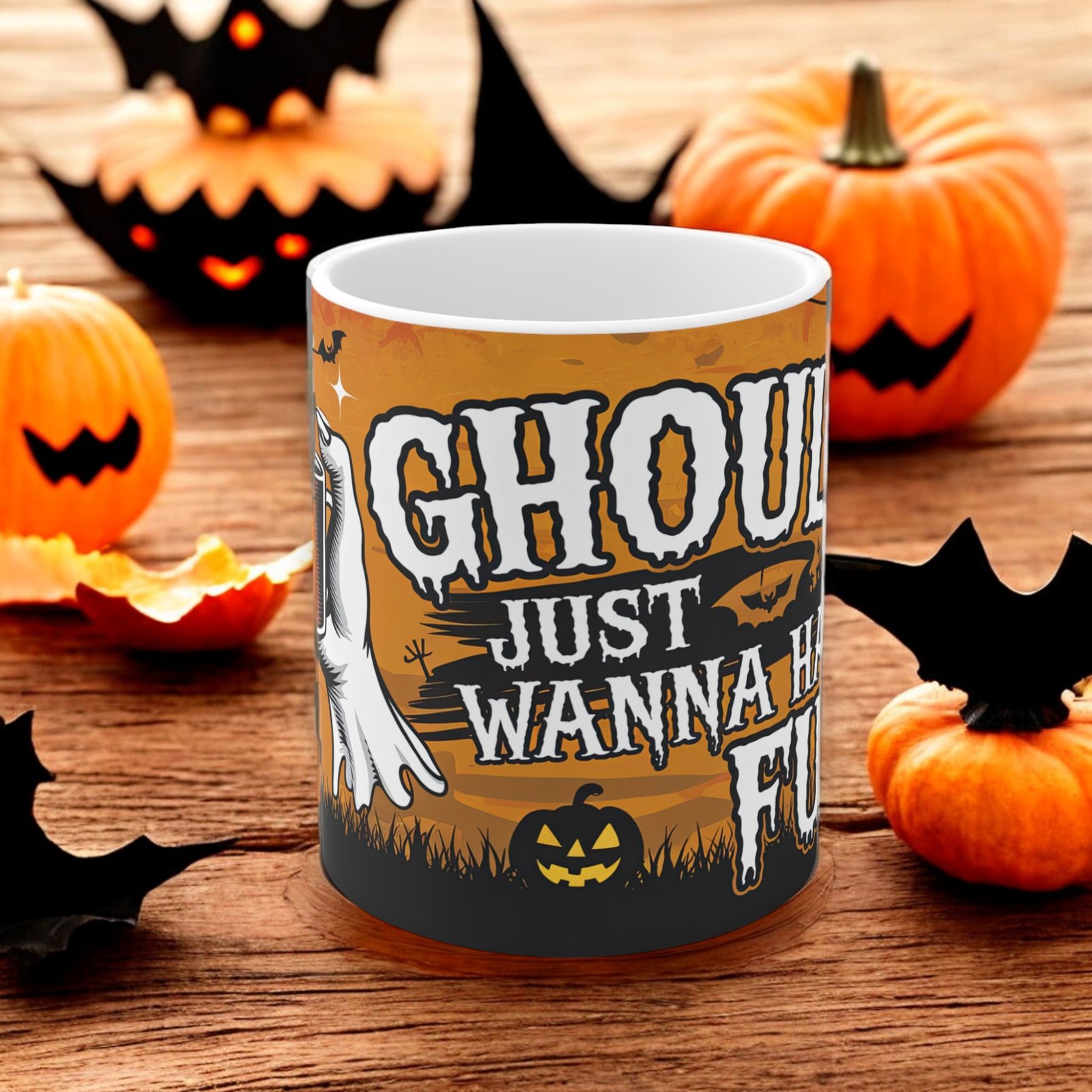 Get ready to transform your space with this *Halloween Decor Mug*, a spooky yet stylish addition to your kitchen or office. Featuring that well known phrase “Ghouls just wanna have fun”, this *Halloween Mug* is perfect for sipping hot beverages during the chilly fall season while adding a festive touch to your home. Whether you’re enjoying your morning coffee or preparing for a Halloween party, this mug will bring the perfect blend of fun and fright. Made from high-quality ceramic, it’s both microwave and dishwasher safe, ensuring convenience and durability. This mug isn’t just for drinks—its festive design makes it a versatile piece of *Halloween decor*. Ideal as a gift for coffee or tea lovers, this mug will delight anyone who loves Halloween and fall aesthetics, making it a go-to choice for seasonal celebrations.