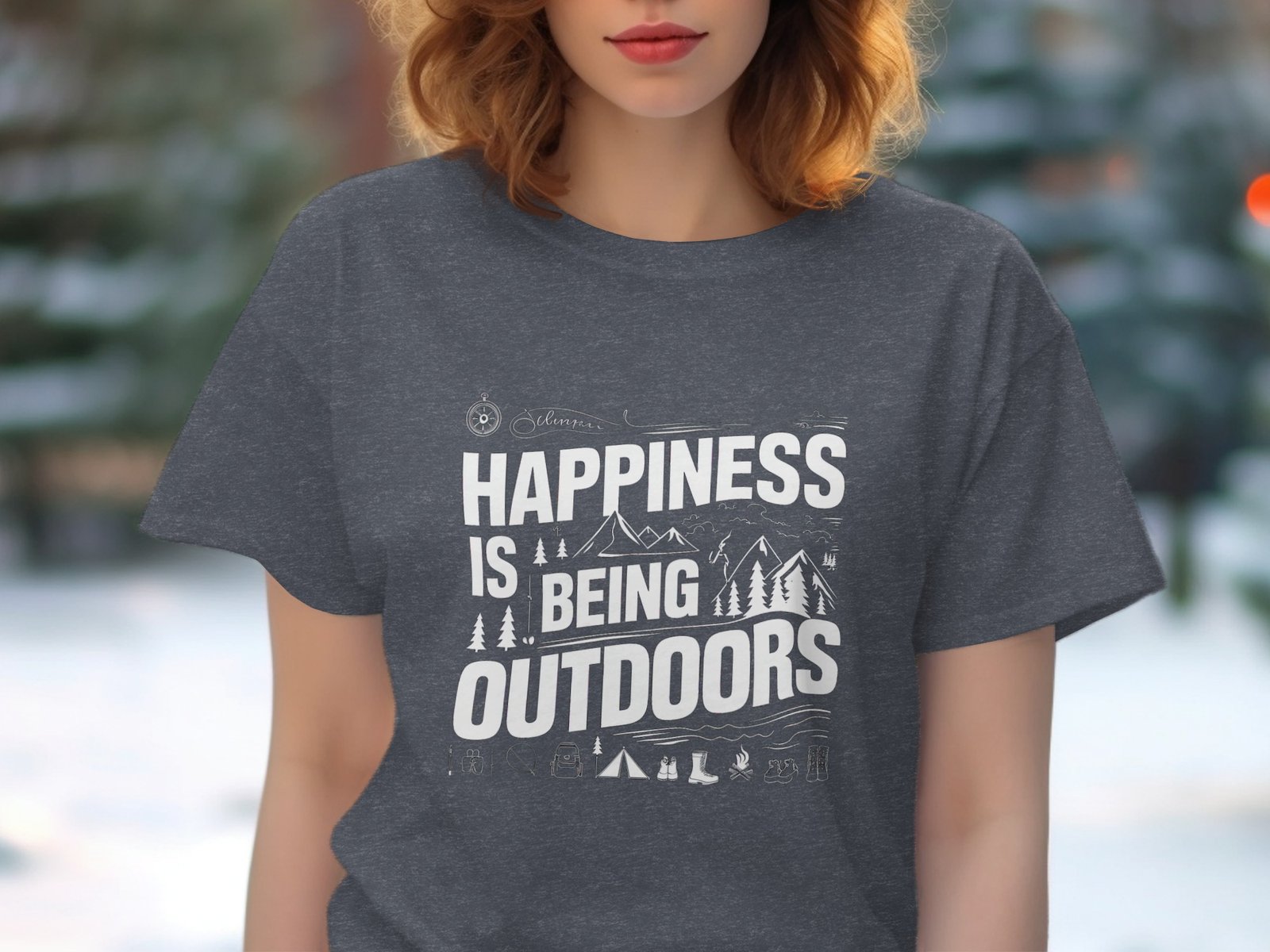 Express your love for nature with this outdoors themed tee! Featuring a unique design with camping and hiking equipment this T-Shirt is great for your next adventure.