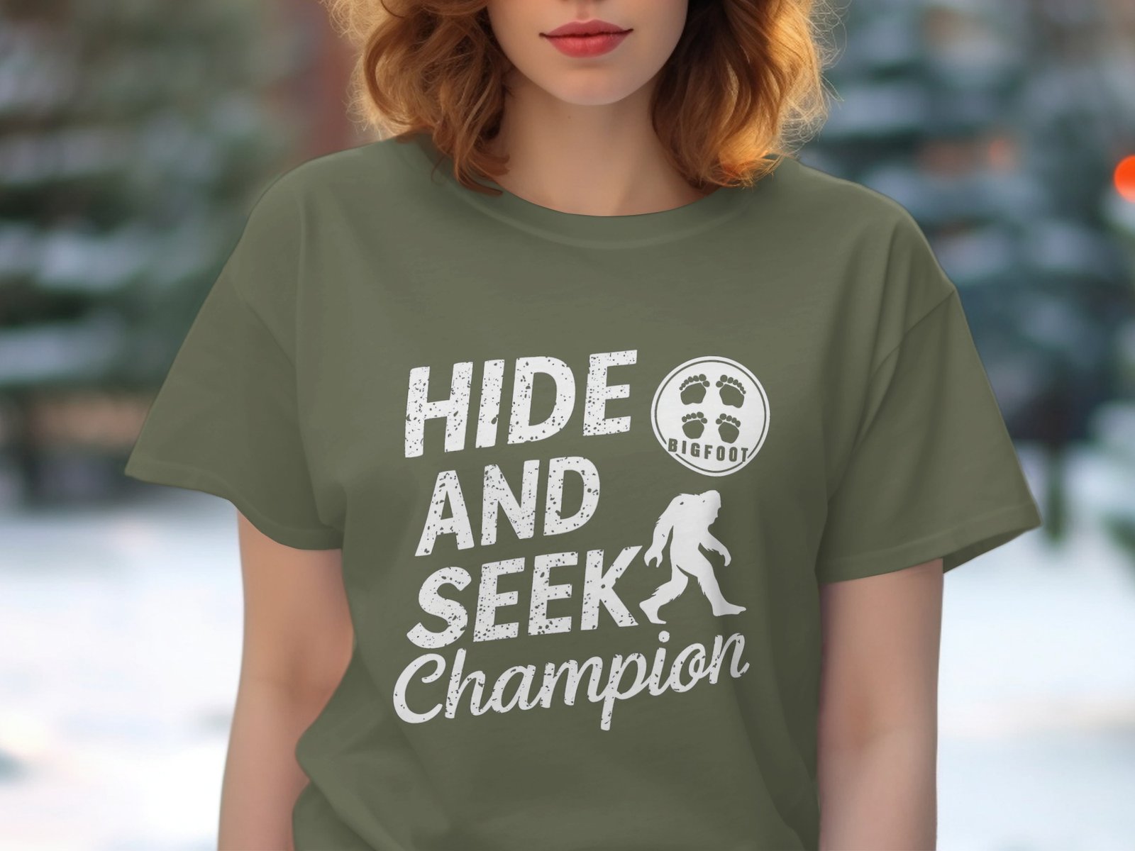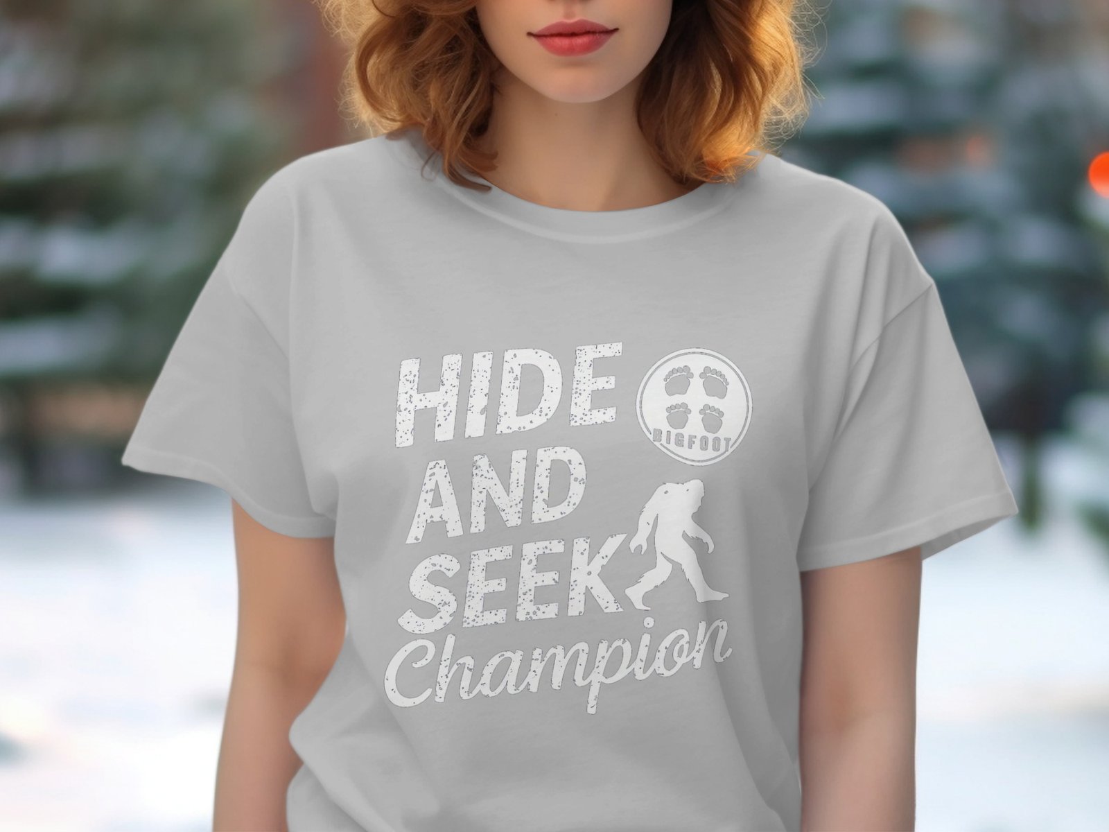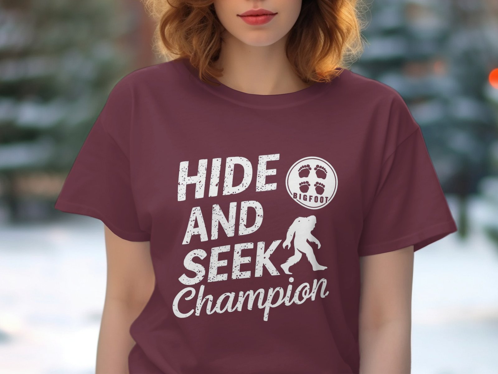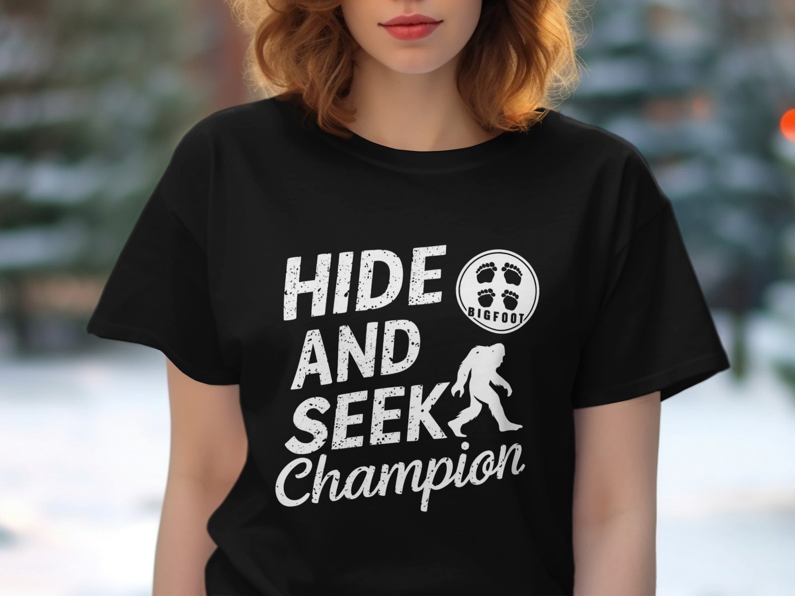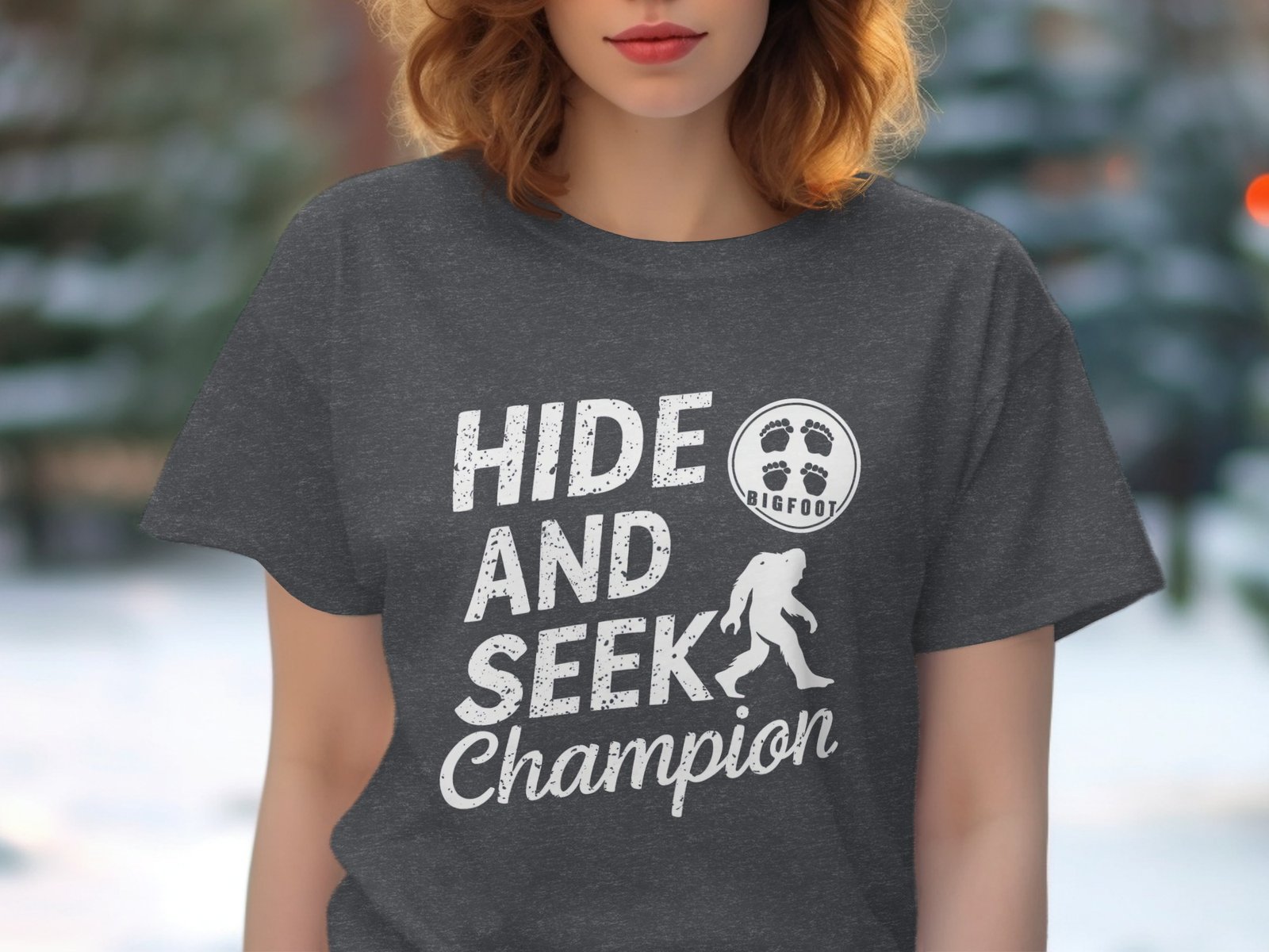 Embrace adventure with this Hide Seek Champion Bigfoot T-Shirt! Ideal for camping trips hiking trails and anyone who enjoys a bit of mystery. Get yours today and explore!