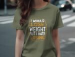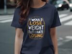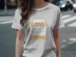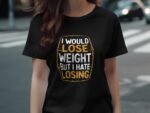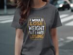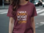 Express your humor with this witty tee. Featuring a funny quote about losing weight and hating losing. Perfect for those who love a good laugh. Get this unique T-Shirt now!