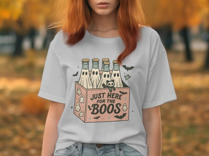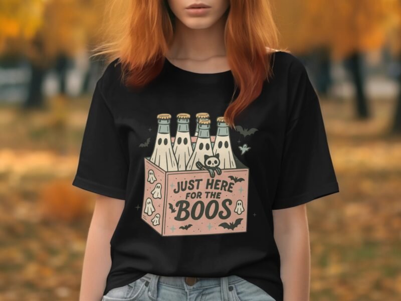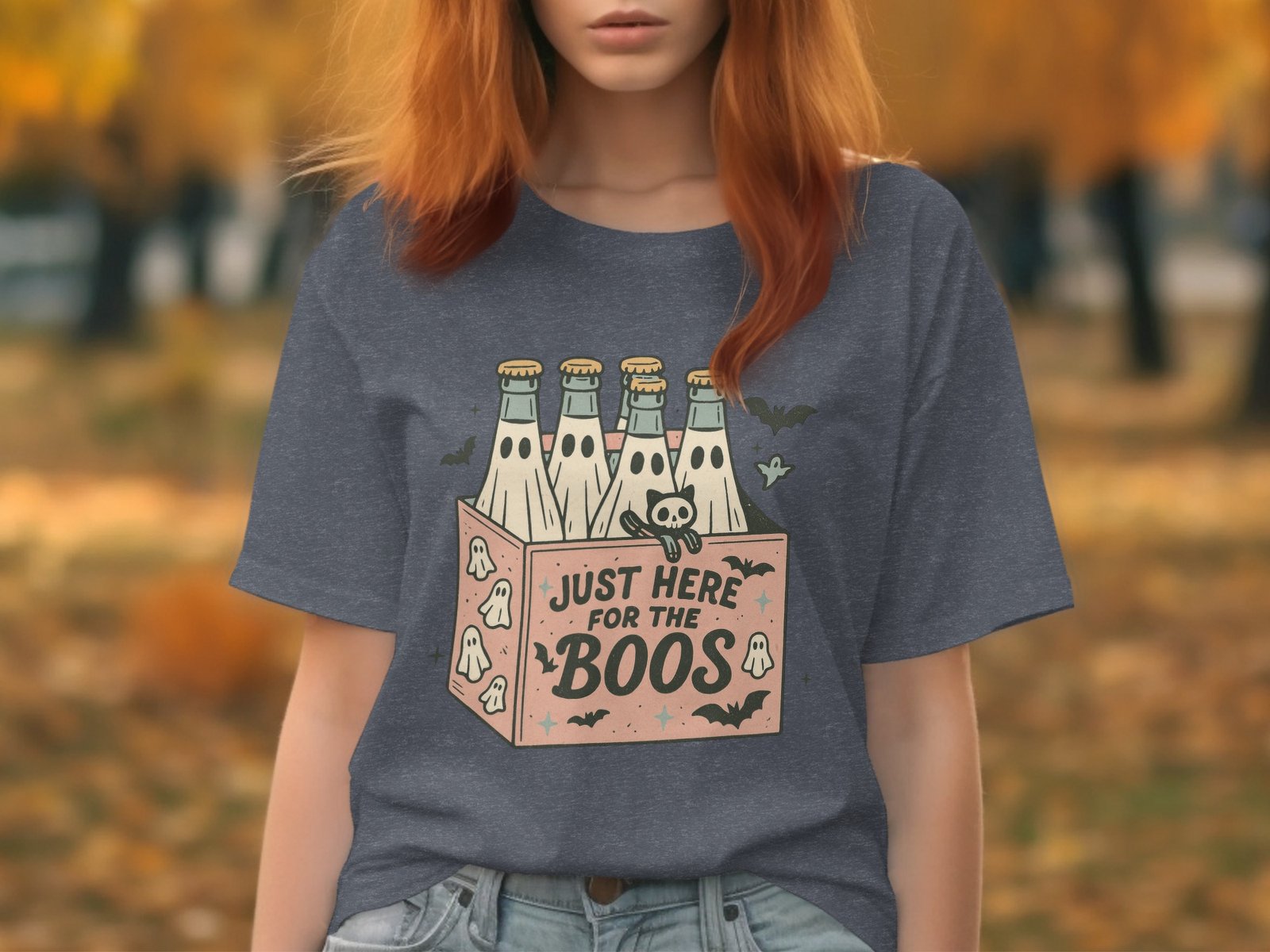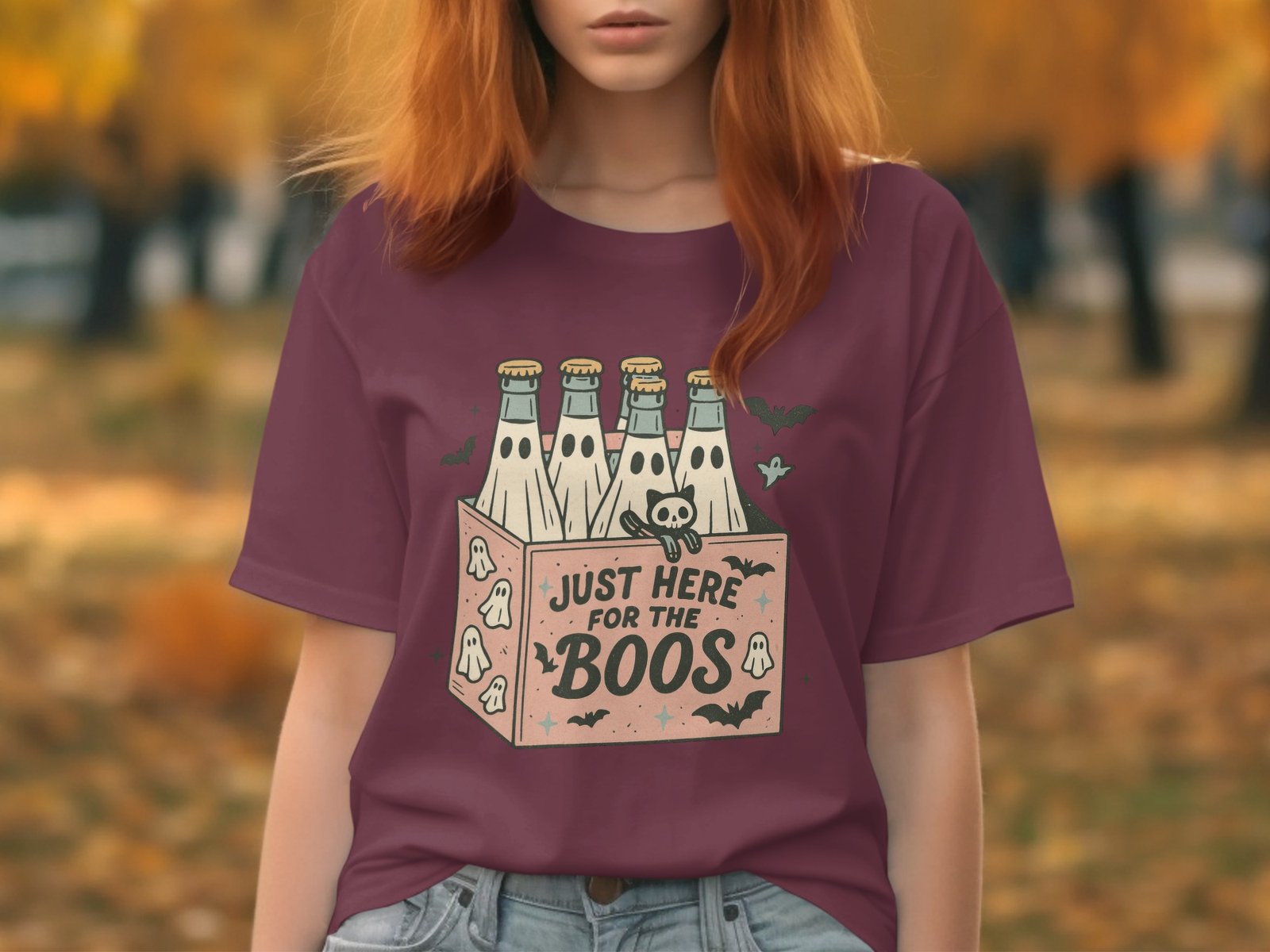Get into the spooky spirit with this fun Halloween T-Shirt! Showcasing cute ghosts and a playful “Just Here For The Boos” design. Perfect for Halloween parties or everyday spooky vibes.