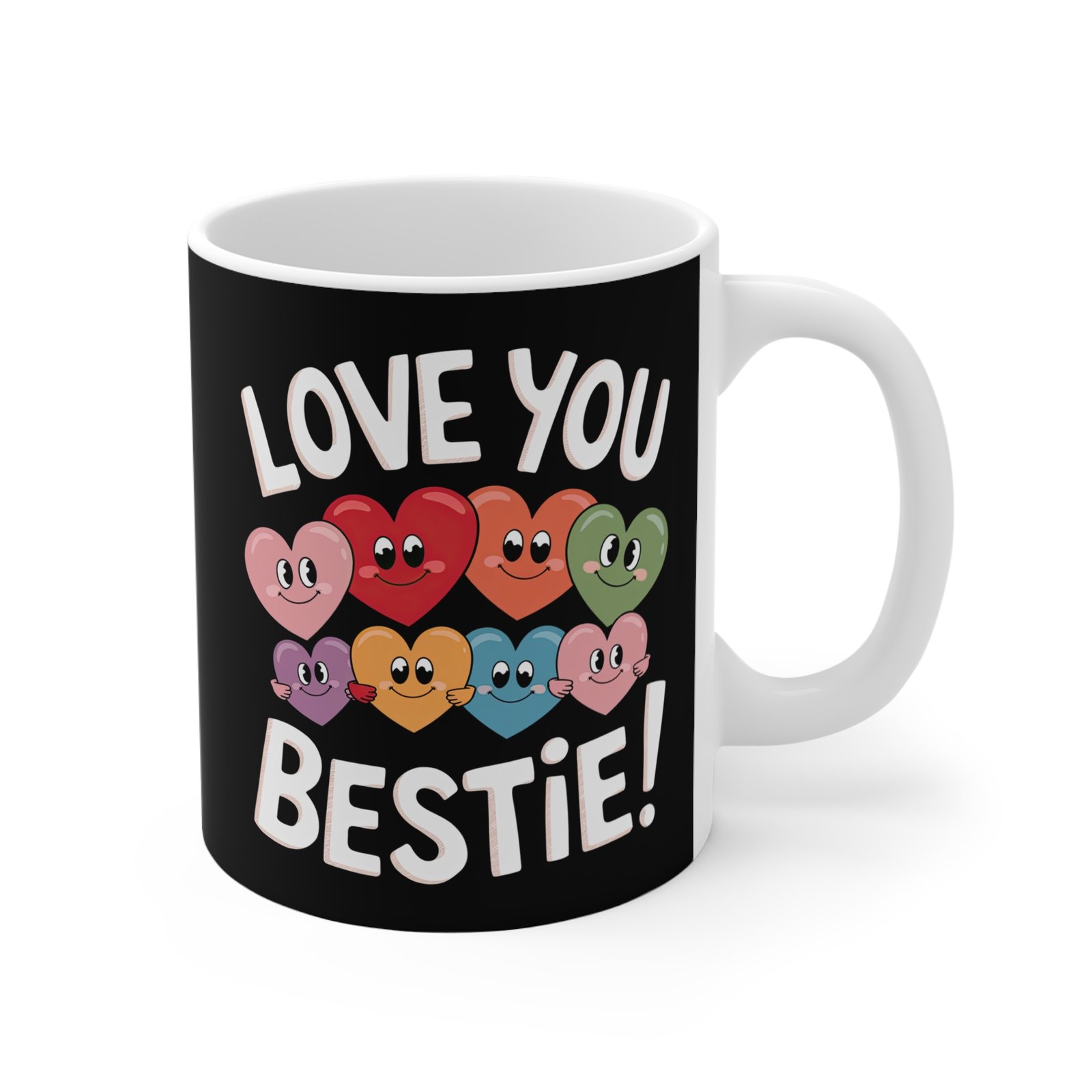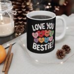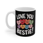 Show your bestie some love with this adorable “Love You Bestie” black mug! Featuring a colorful and cheerful heart design, this ceramic coffee cup is the perfect way to celebrate your friendship. Whether it’s for birthdays, holidays, or just because, this mug makes a thoughtful and fun gift for your closest friend. A charming way to enjoy coffee, tea, or cocoa while thinking of your favorite person.