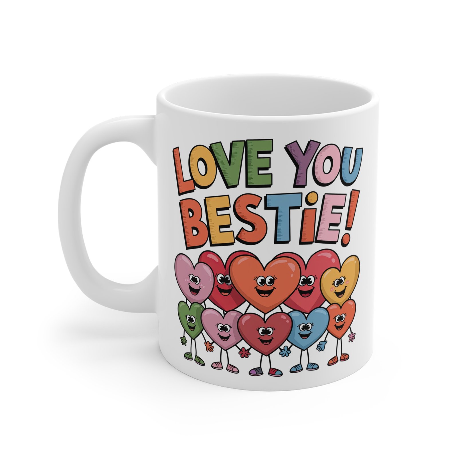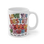 Show your bestie how much they mean to you with this adorable “Love You Bestie” coffee mug! Featuring a vibrant and cheerful heart design, this ceramic mug is the perfect gift for celebrating your friendship. Ideal for Valentine’s Day, birthdays, or any occasion to remind your best friend how much you care.