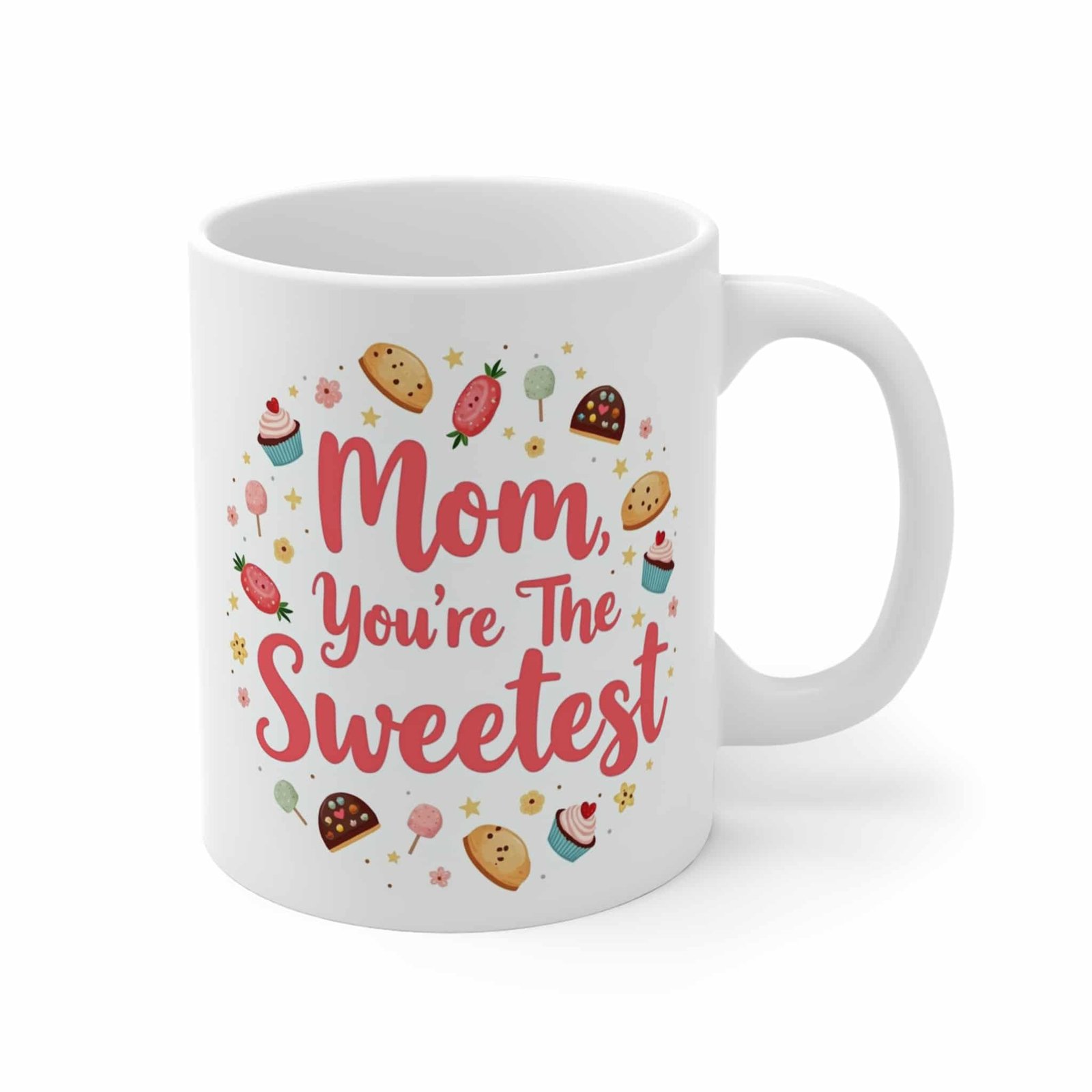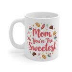 Celebrate Mother’s Day with this high-quality ceramic mug, featuring the heartwarming phrase “Mom, You’re the Sweetest” in vibrant pink text. Adorned with charming illustrations of cookies, cupcakes, strawberries 🍓, and stars ✨, it’s the perfect way to show appreciation. Microwave and dishwasher-safe for ultimate convenience, this mug is both practical and delightful. Ideal for tea, coffee, or any cozy beverage, its loving design makes it a thoughtful gift for moms who enjoy a touch of sweetness. Make her day memorable with this beautiful token of love ❤️.