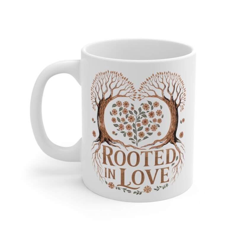 Rooted in Love – Coffee Mug – Heart Tree Design, Romantic Nature Gift, Cute Anniversary Mug for Couples, Valentine’s Day Gift Idea