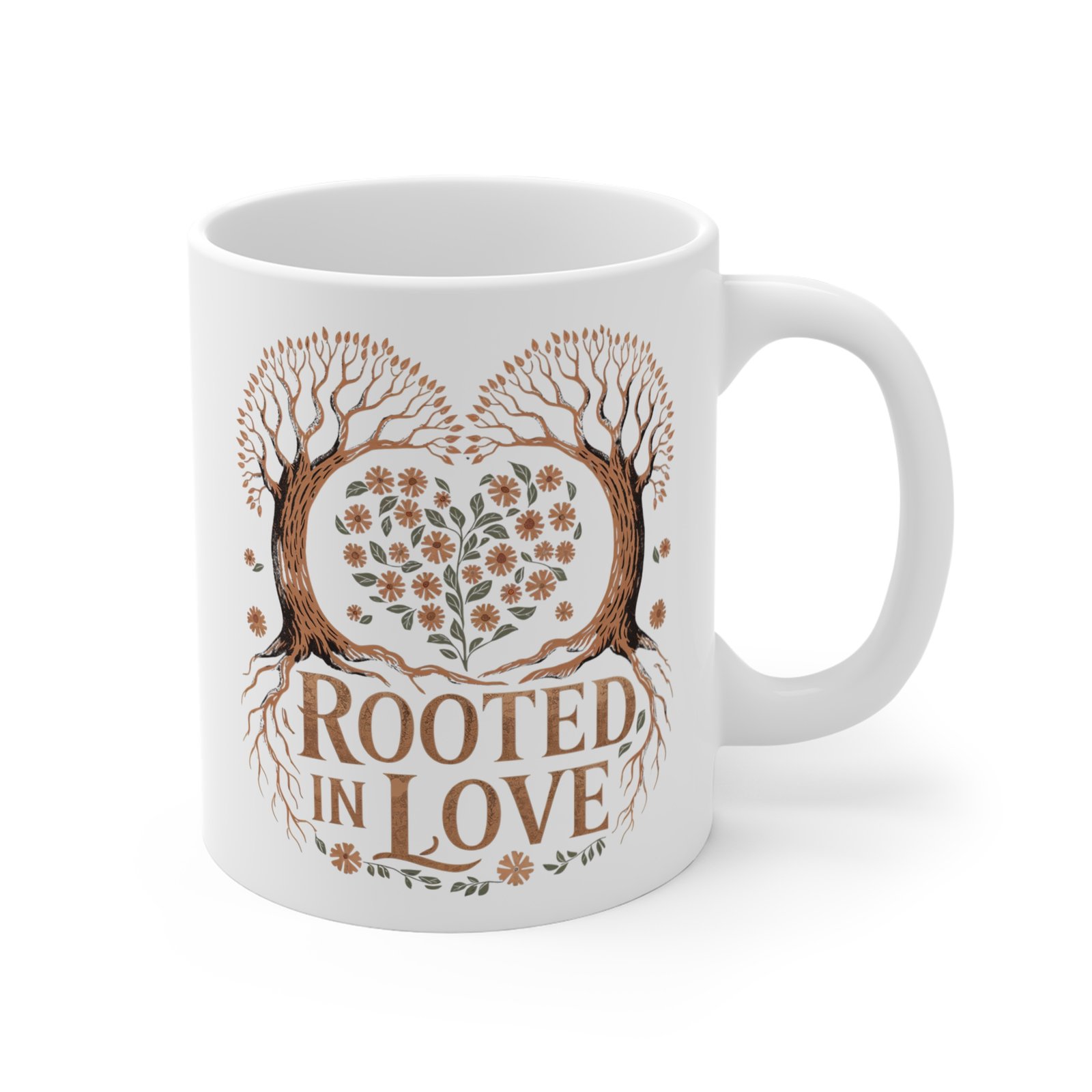 Rooted in Love - Coffee Mug - Heart Tree Design, Romantic Nature Gift, Cute Anniversary Mug for Couples, Valentine's Day Gift Idea