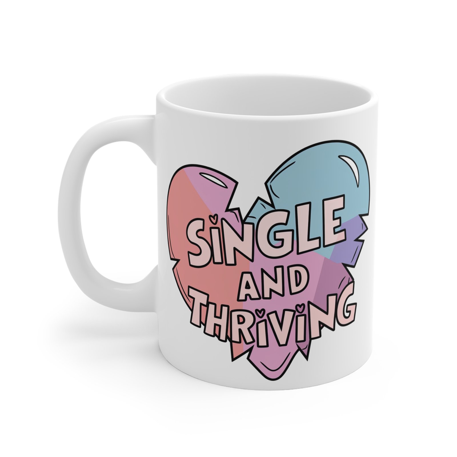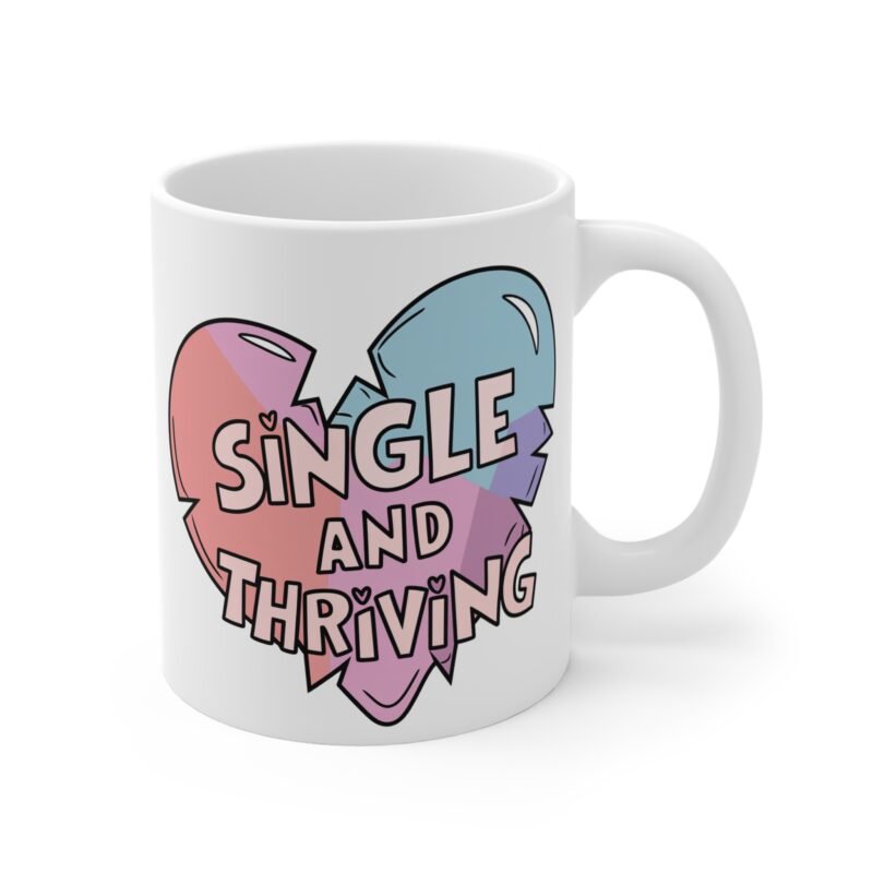 Celebrate your independence with this cheerful “Single and Thriving” coffee mug! Featuring a colorful heart design and empowering message, this ceramic cup is perfect for singles who embrace self-love and positivity. A great gift for yourself or friends who are thriving on their own. Enjoy your coffee, tea, or cocoa while showing off your confidence and style!