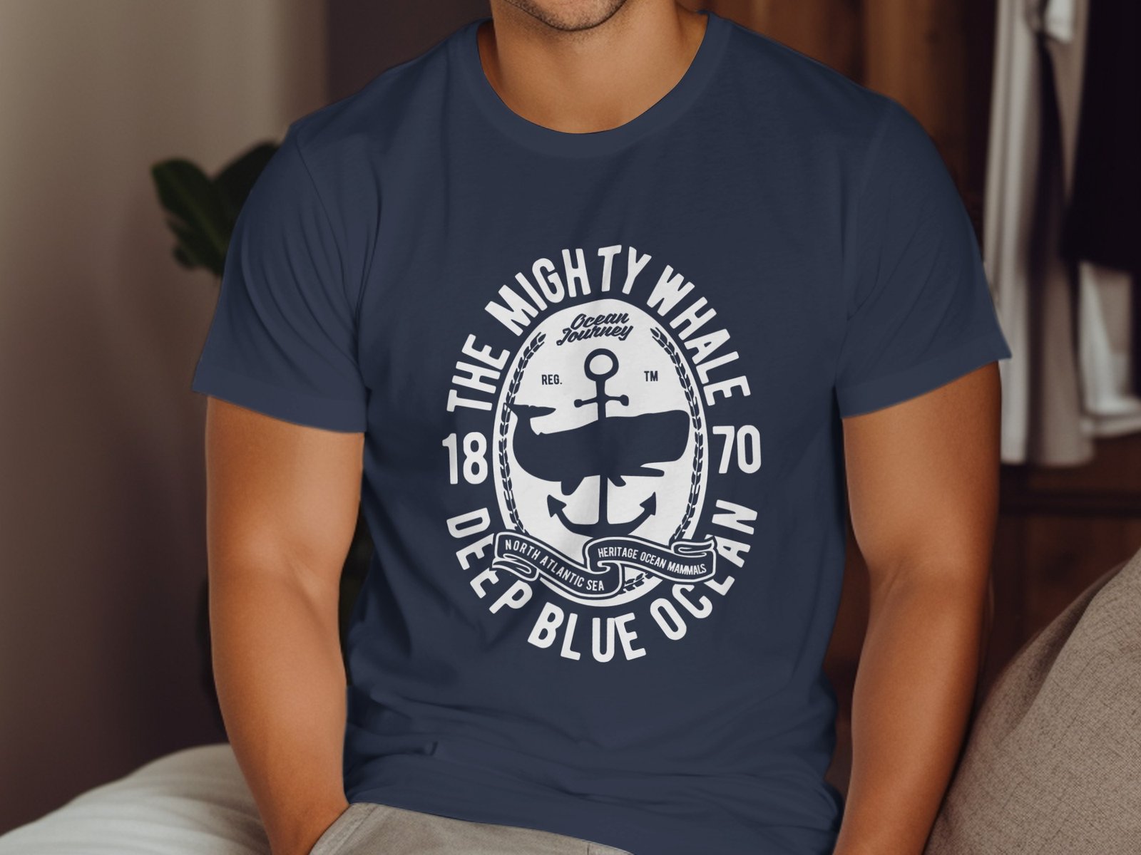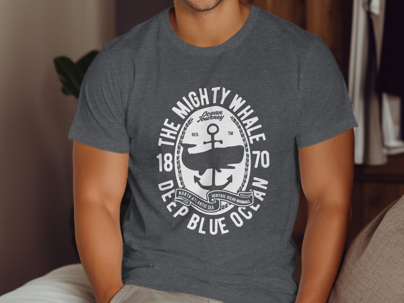 Dive into the deep blue with this vintage-inspired whale graphic T-Shirt! Featuring a classic ocean journey theme and nautical anchor design. Celebrate ocean mammals and heritage with style.