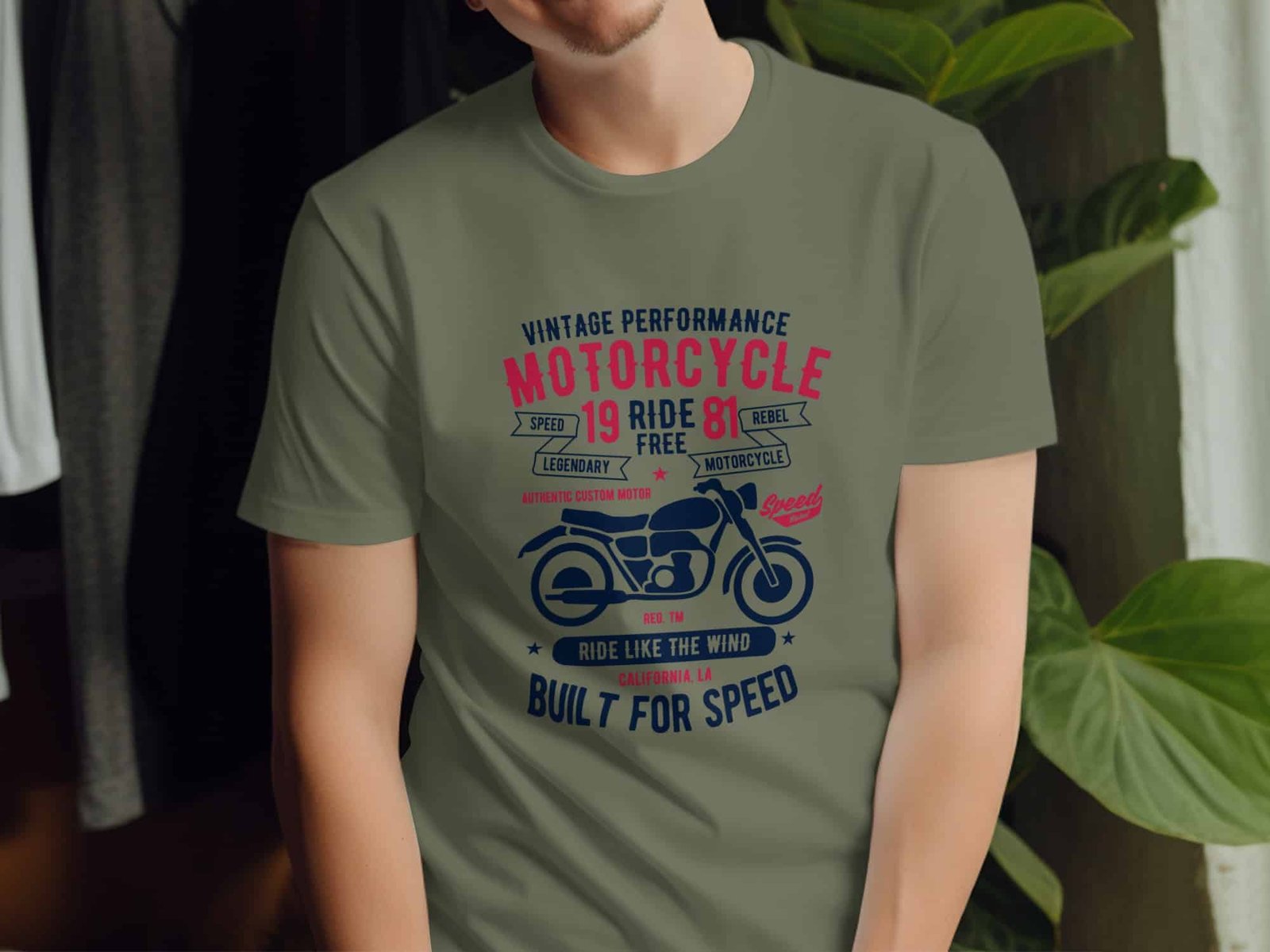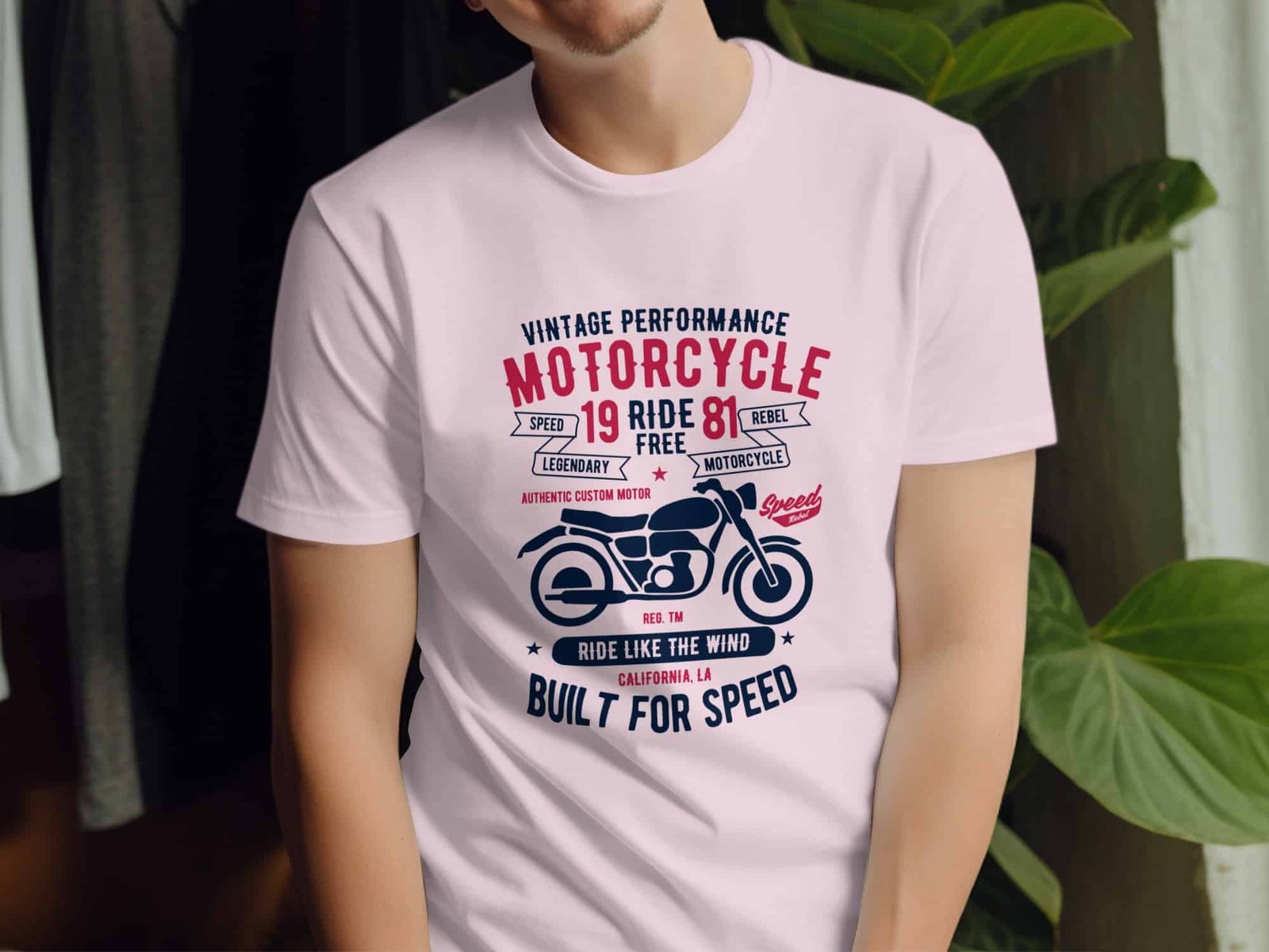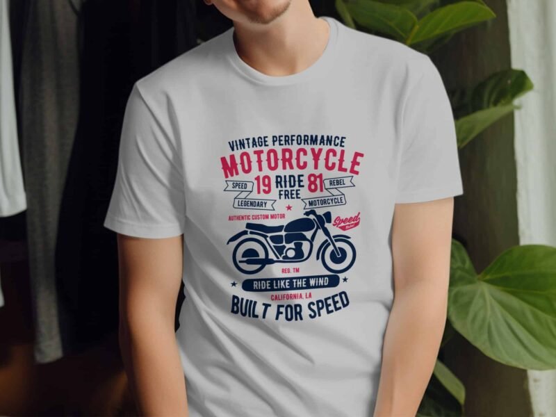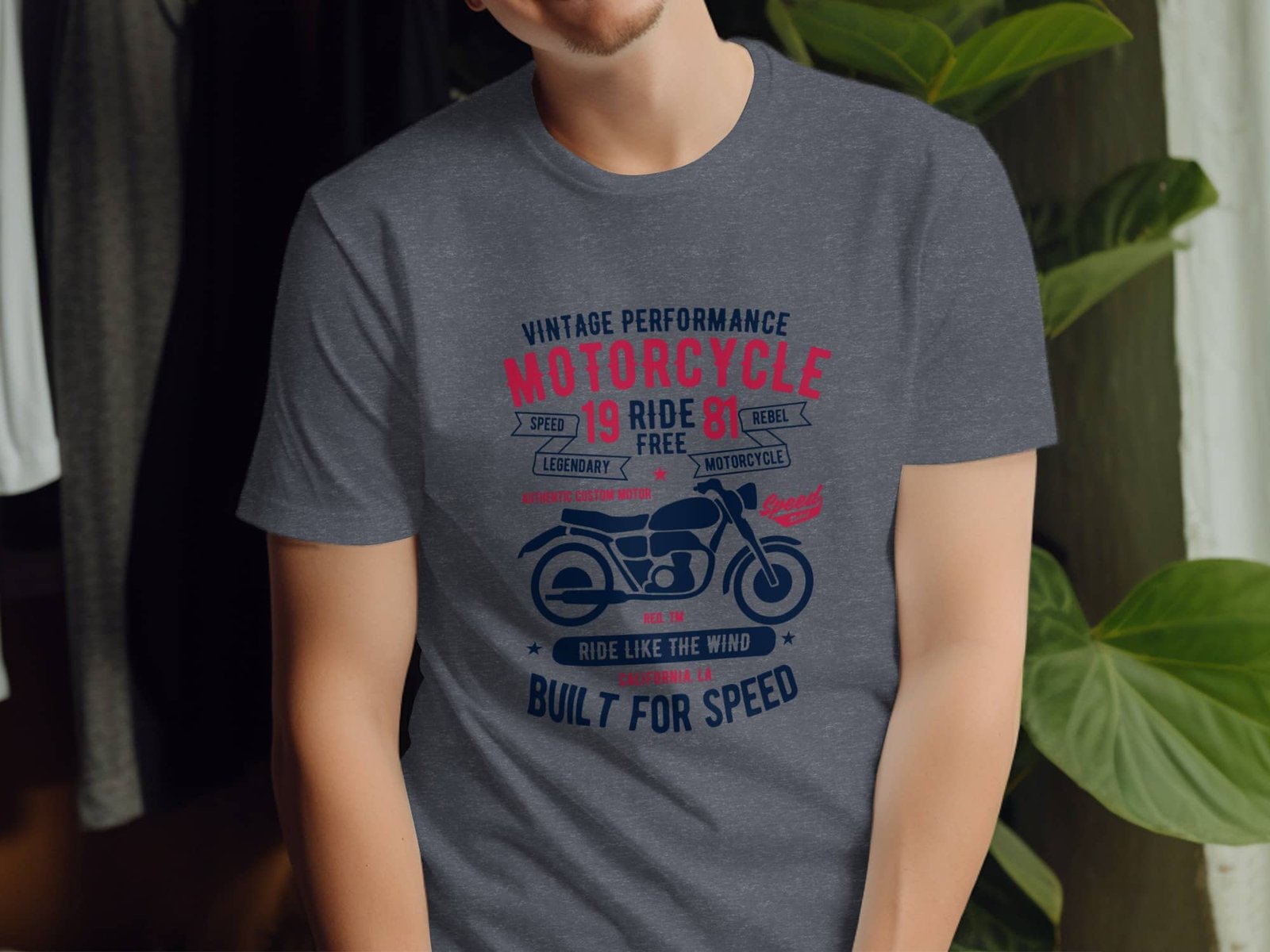 Show off your love for motorcycles with this cool vintage-inspired T-Shirt! Featuring a motorcycle graphic and phrases like “Ride Like the Wind” and “Built for Speed”.