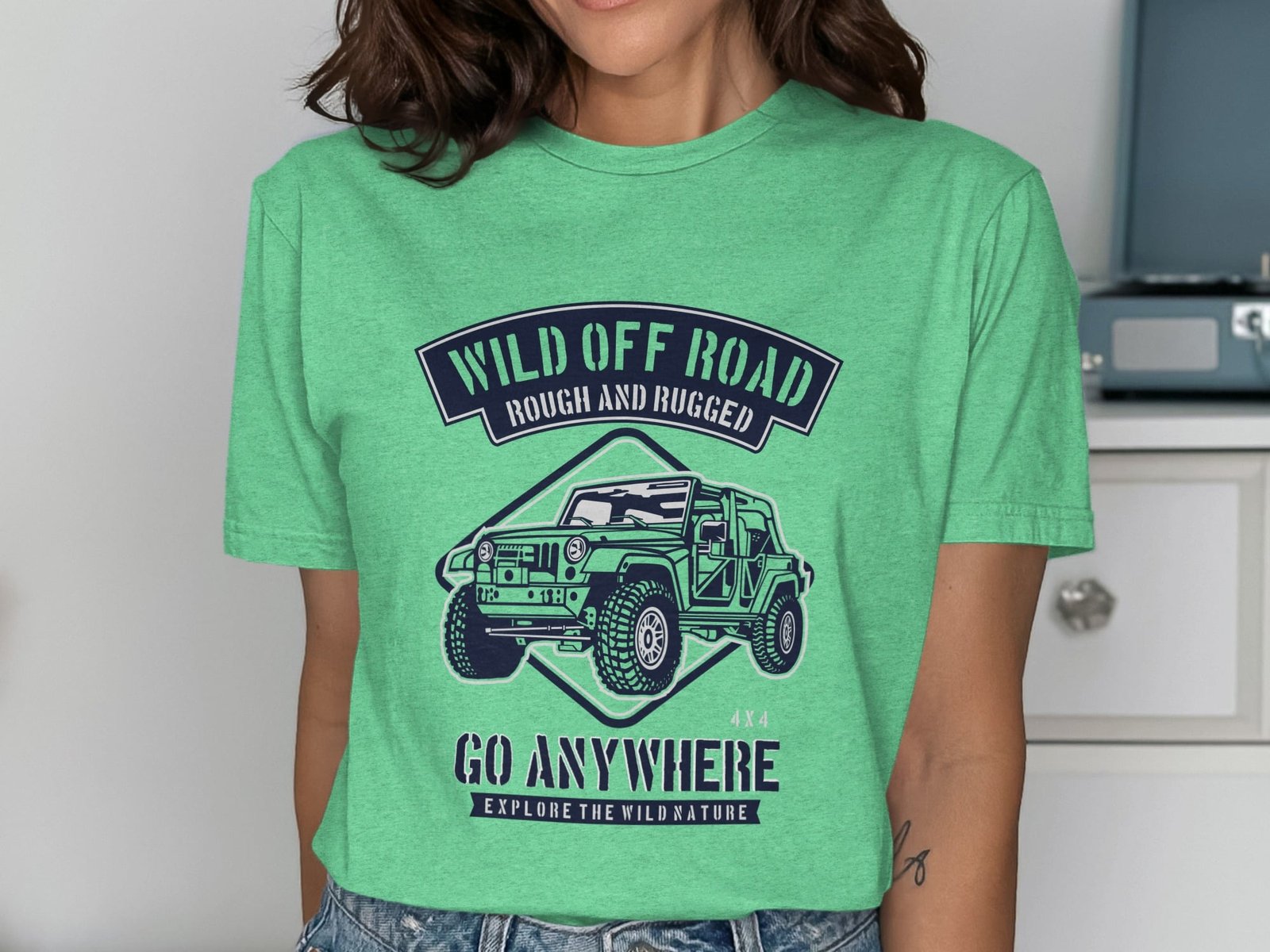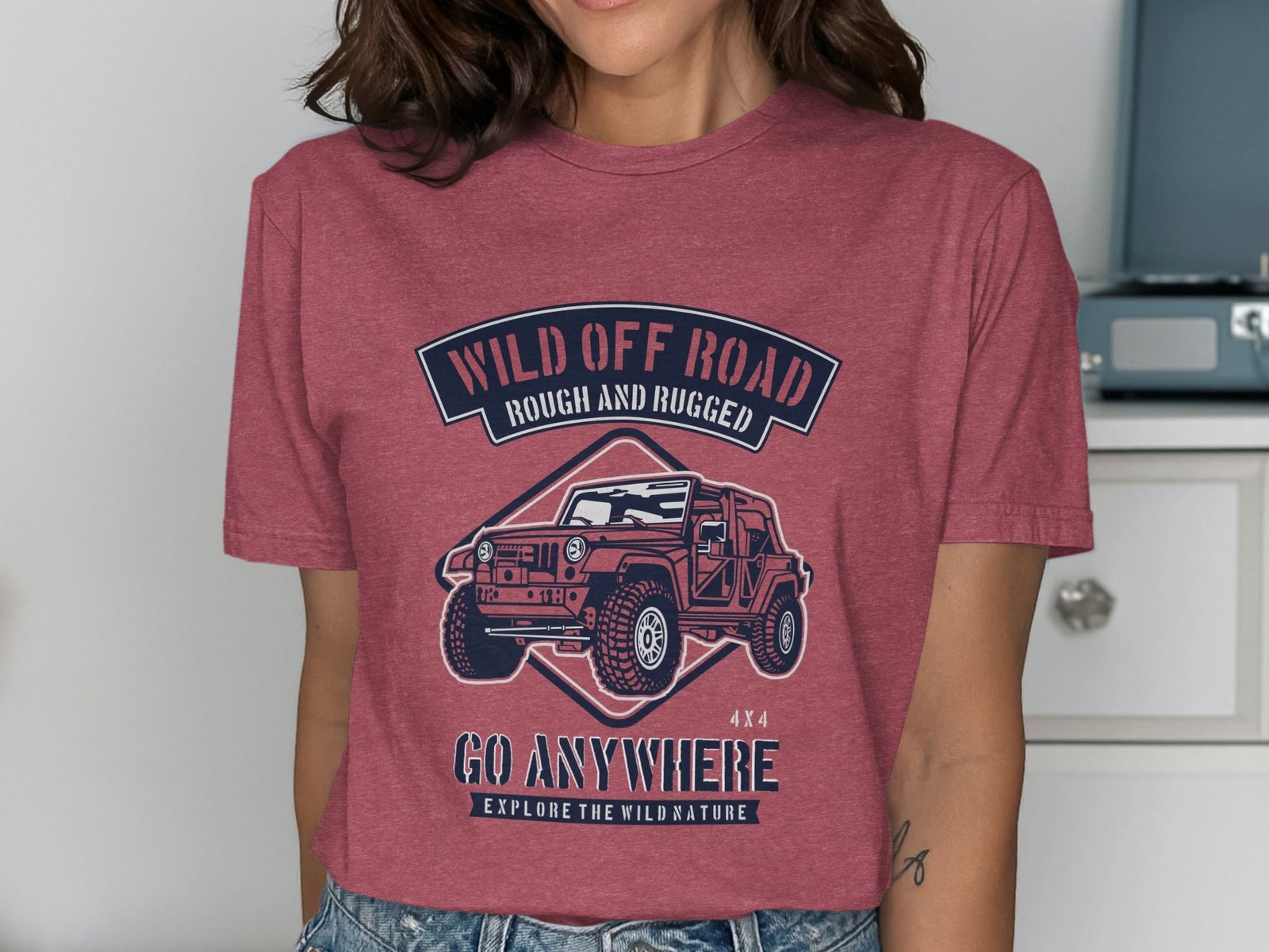 Embrace adventure with this Wild Off Road T-Shirt! Features a rugged vehicle design and the inspiring message “Go Anywhere”. Ideal for explorers and off road enthusiasts.