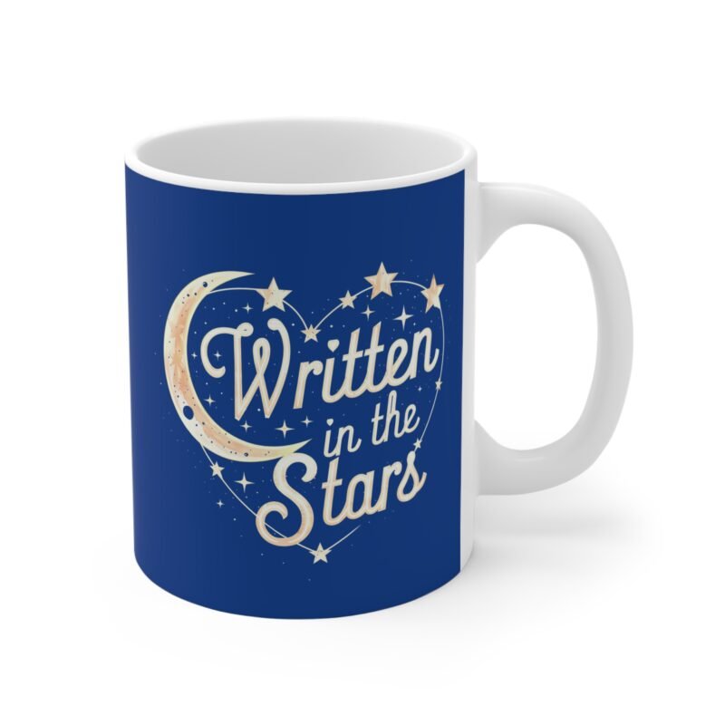 Celebrate your celestial connection with this enchanting “Written in the Stars” mug! Featuring a magical moon and stars heart design, this blue ceramic coffee cup is perfect for couples, astrology lovers, and romantics. A thoughtful gift for anniversaries, Valentine’s Day, or any special occasion to show your love is truly written in the stars.