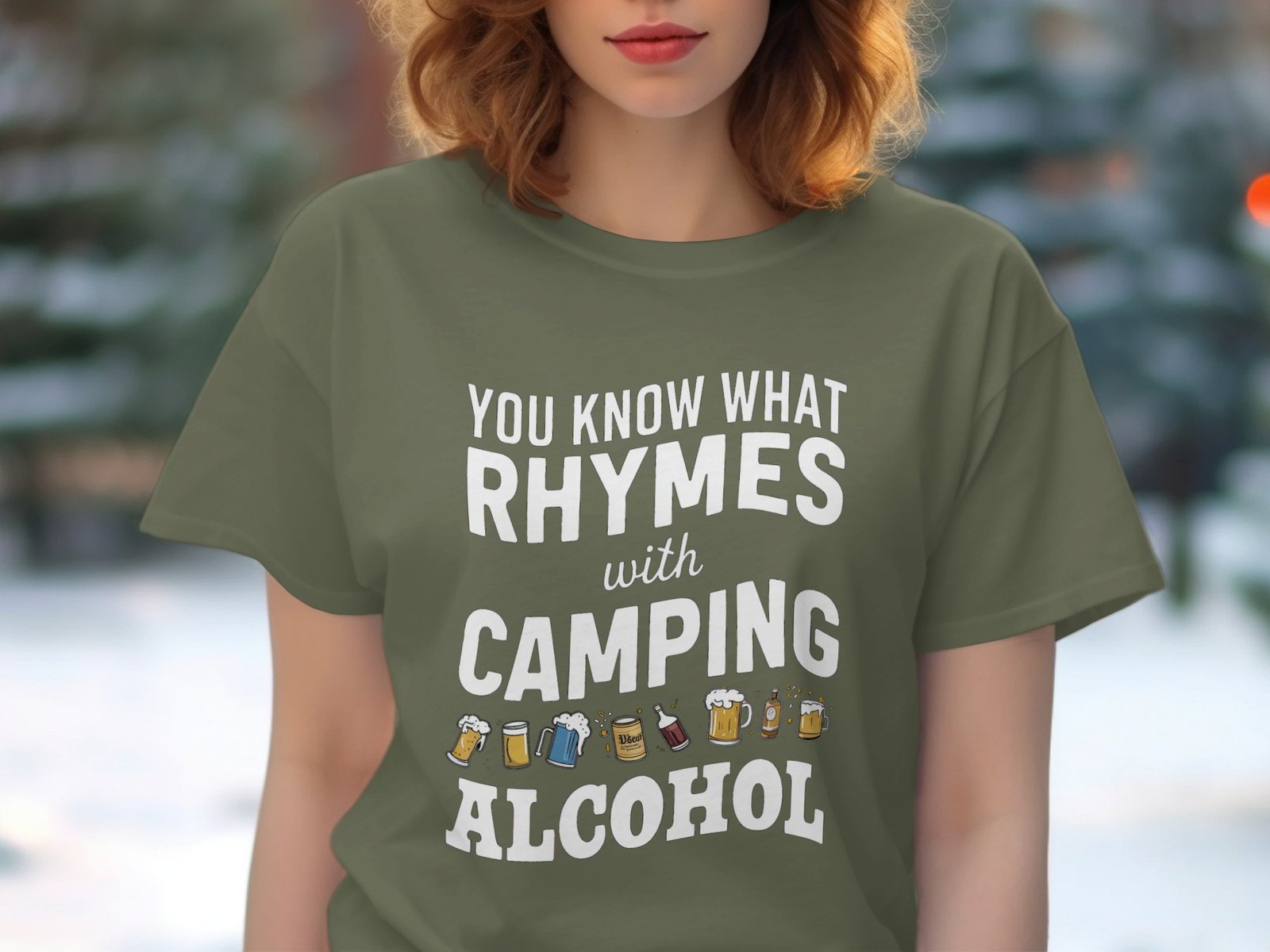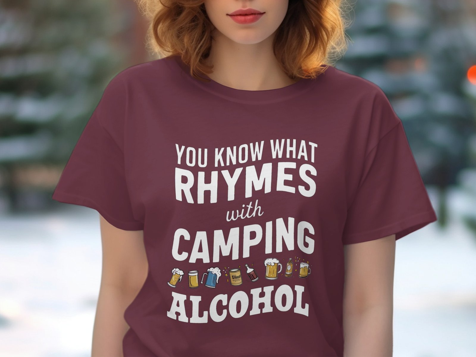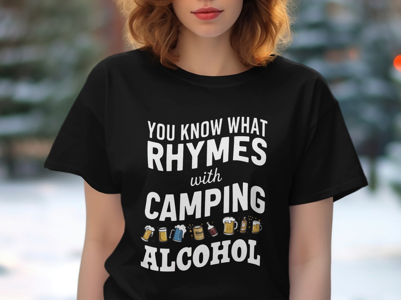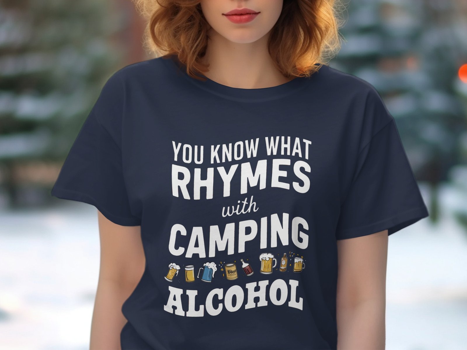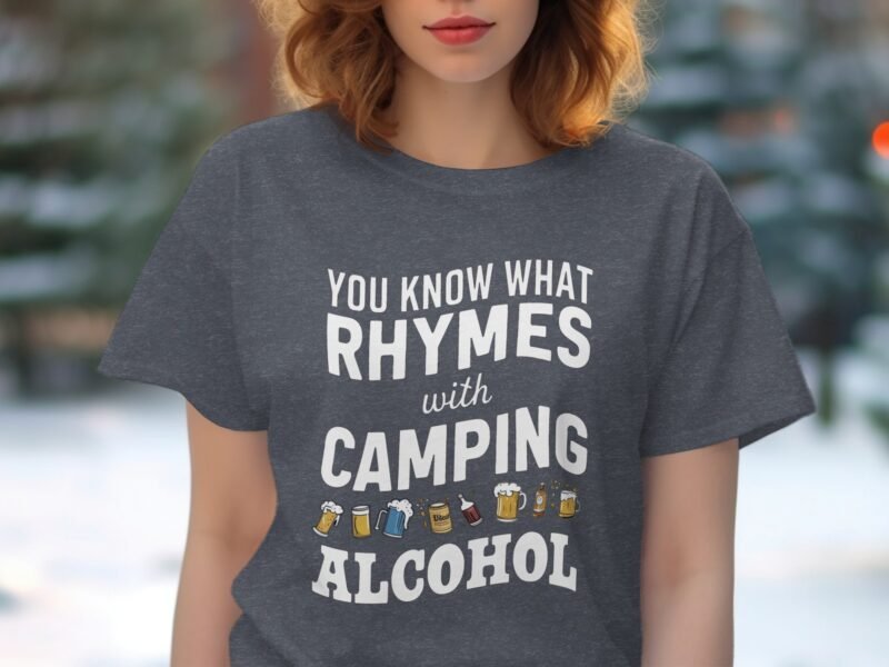 Get ready to laugh around the campfire! This funny “You Know What Rhymes With Camping Alcohol” design is perfect for camping trips or hitting the trails. A great gift idea!