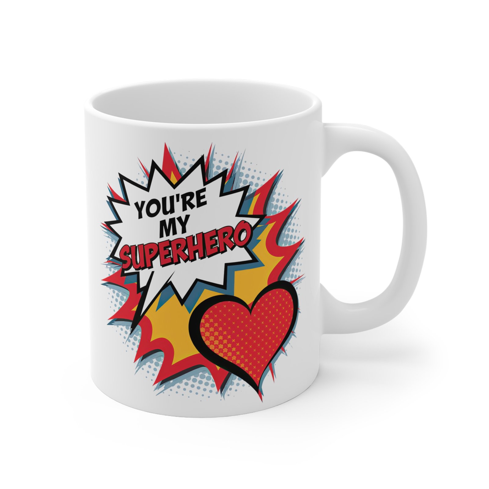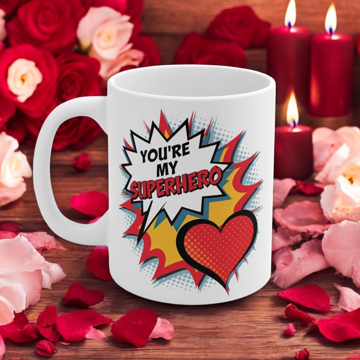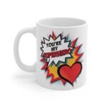 Celebrate your love with a heroic twist using this “You’re My Superhero” coffee mug! Featuring a vibrant comic book-style design with a bold heart, this ceramic mug is perfect for couples, superhero fans, and romantics. Great for Valentine’s Day, anniversaries, or just because, it’s a fun and unique way to show your special someone that they’re your ultimate hero.